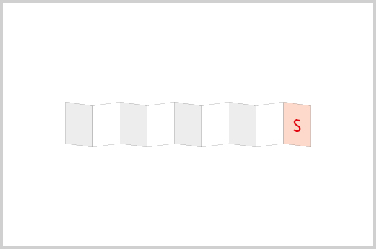 | offen 423 x 76 mm | 8x Leporello-Falz |