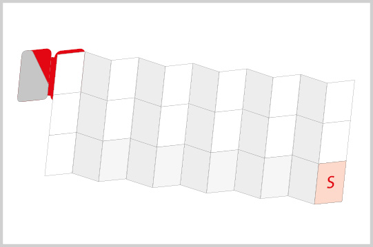 | 4-seitig + Lasche + 6 mm Rücken | gefalzt auf 48 x 78 mm | Umschlag einfalzen |
